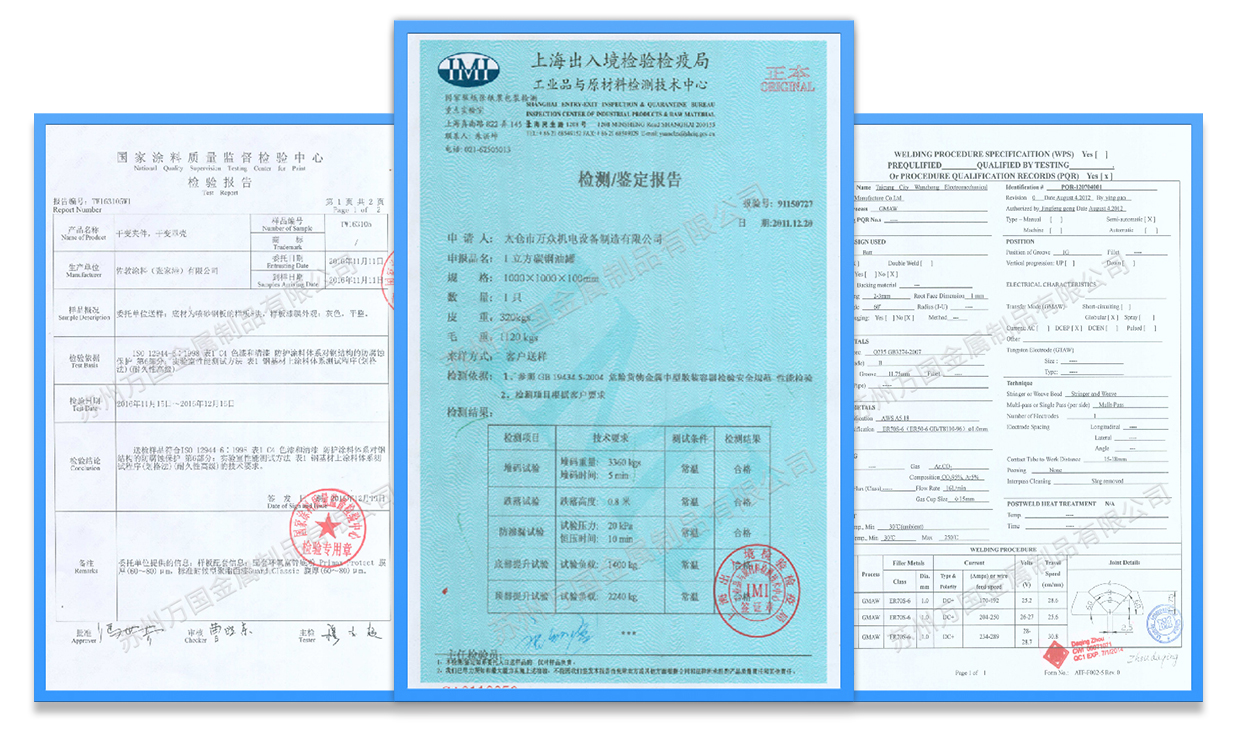 我們嚴格地運行生產(chǎn)過程的質(zhì)量管控和成品檢驗,并擁有WPS焊接工藝評定、C4-H防腐認證、罐體鑒定檢測報告等,確保給客戶提供高品質(zhì)、高性能的產(chǎn)品